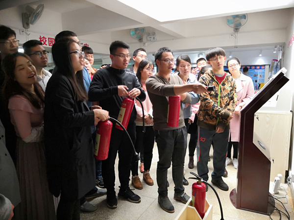 此次消防安全教育活动共分三个环节进行,分别是消防安全知识讲座、消防安全演练、消防器材检测环节。在消防安全教育活动中,学校安全教育基地的秦俊老师结合现实中的真实案例,生动、形象地还原了火情现场,强调了消防安全的重要性,并向同学们传授了消防安全方面的知识,有效的提高了同学们对安全的认识。为帮助同学们掌握正确使用消防器材的方法,秦老师现场展示了消防器材的操作方式,并通过模拟设备指导同学们熟练操作消防器材。整个活动过程中,同学们参与模拟练习的积极性较高,他们通过反复练习,不断地提高自身使用消防器材以及应急处置的能力。