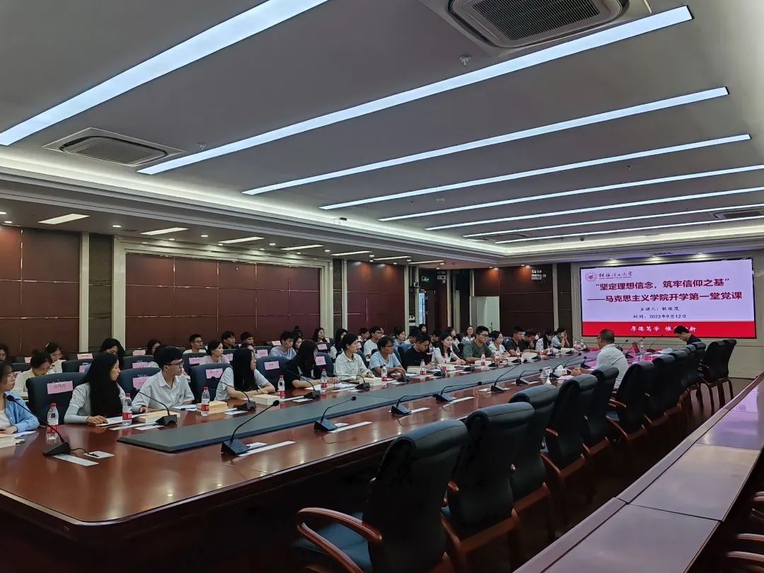 为切实做好2023级新生入校思想政治教育工作, 9月12日下午,公司党委书记耿俊茂在雁山校区15201会议室为2023级新生讲授开学第一堂党课,党课由学院团委书记张劲彪主持。